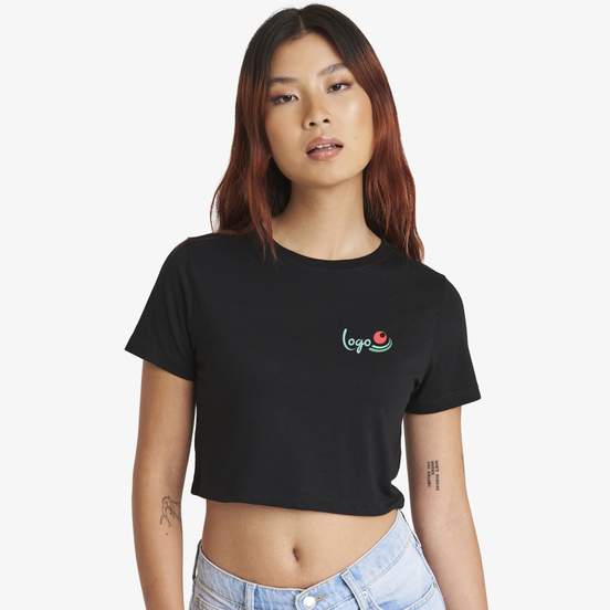 Le Women s tri Blend Cropped t est un tee-shirt femme à coupe courte, avec encolure ras-du-cou et manches courtes. Composition : 50% polyester, 25% viscose, 25% coton. Exception : heather black 40% viscose, 40% coton, 20% polyester.