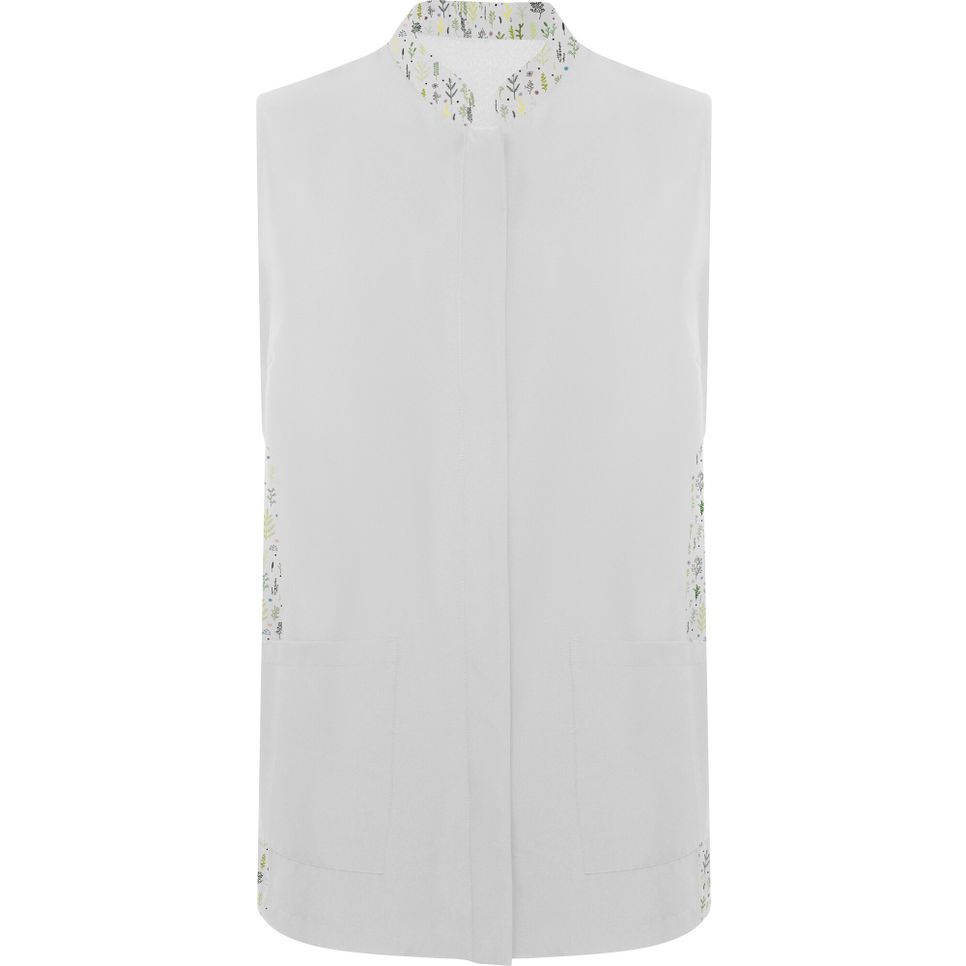 La blouse tunique sans manches Aldany avec col mao et fermeture centrale à boutons-pression cachés convient aux usages professionnels. Coutures latérales et pinces poitrine. Deux poches plaquées devant. Composition : 100% polyester. Personnalisation possible.