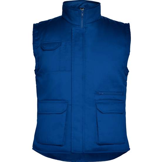 Le bodywarmer Almanzor est un gilet de travail à col montant avec zip central et patte à bande auto-agrippante. Multi-poches, dont une poche portable, des emplacements stylos et des poches intérieures. Dos plus long et ajusteur à fermeture automatique. Modèle coupe-vent, personnalisable.