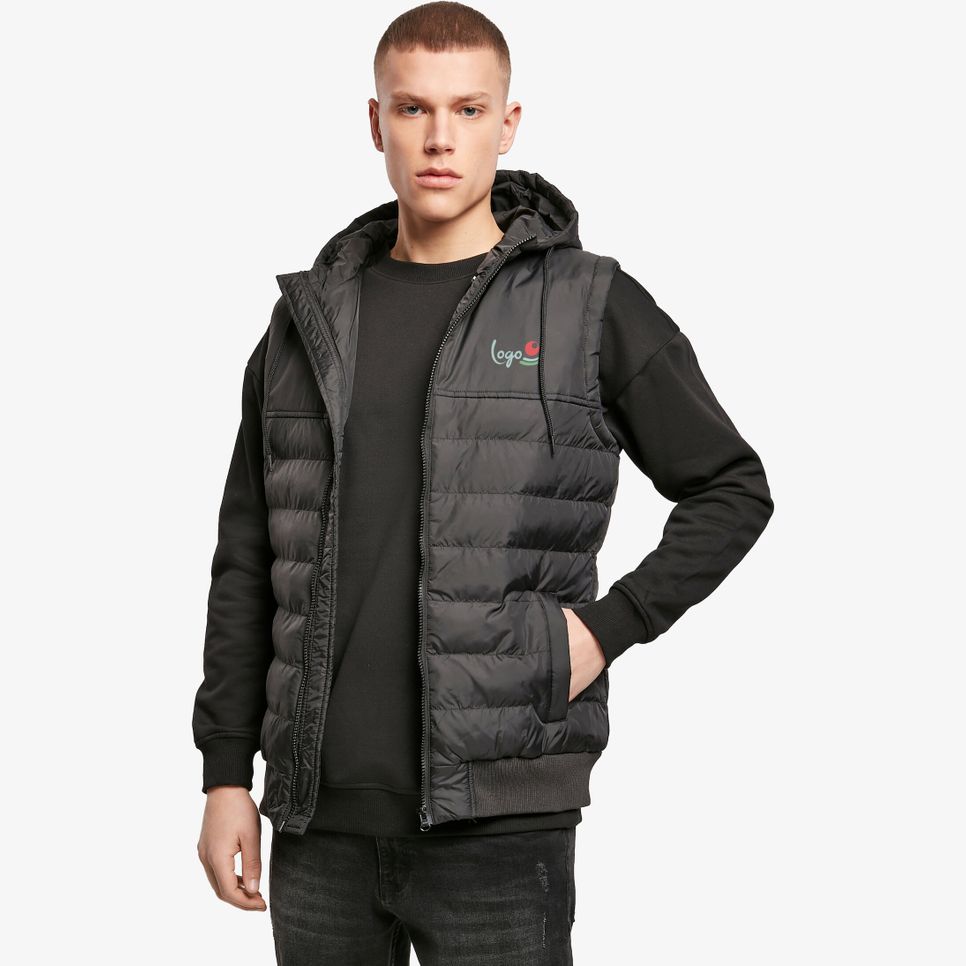 Le Bubble vest est un bodywarmer à capuche avec étiquette neutre indiquant la taille. Poignets côtelés à l’ourlet et cordons plats à la capuche. Convient à la personnalisation.