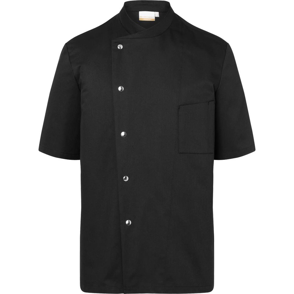 La Chef Jacket Gustav est une veste de cuisine à coupe classique avec manches courtes. La poche poitrine plaquée gauche intègre un compartiment stylo. Fermeture par 5 boutons-pression. Composition : 65 % polyester, 35 % coton.