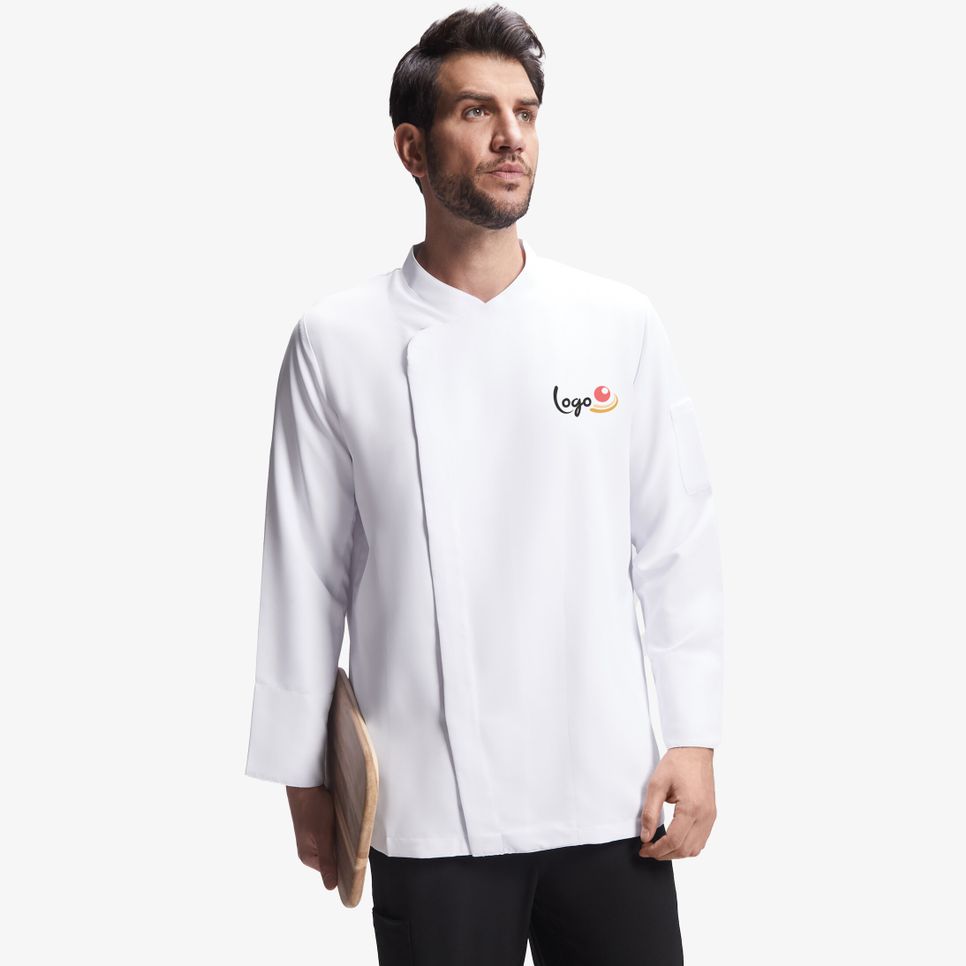 La veste cuisine Diabiz a manches longues avec fermeture centrale croisee et boutons-pression caches. Tour cou, manches ajustees et poignets doubles. Dos en tissu respirant et poche plaquee sur manche gauche. Tissu avant : 100% microfibre polyester. Tissu dos : 100% polyester bird's eye.