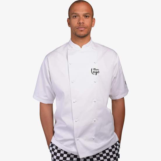 La veste de cuisine Executive Jacket Manches à manches courtes avec deux poches stylo sur la manche gauche et doublure d'aisselle Staycool. Convient au travail en cuisine et peut être personnalisée.