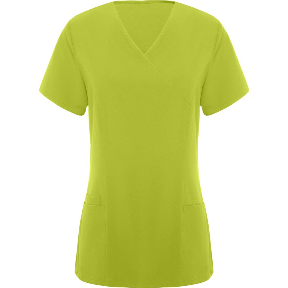 La blouse tunique Ferox Woman pour femme, à manches courtes, avec col V croisé et deux poches françaises. Conçue pour un usage professionnel et une tenue souple. Composition : 94% polyester, 6% élasthanne. Étiquette détachable. Personnalisation possible.