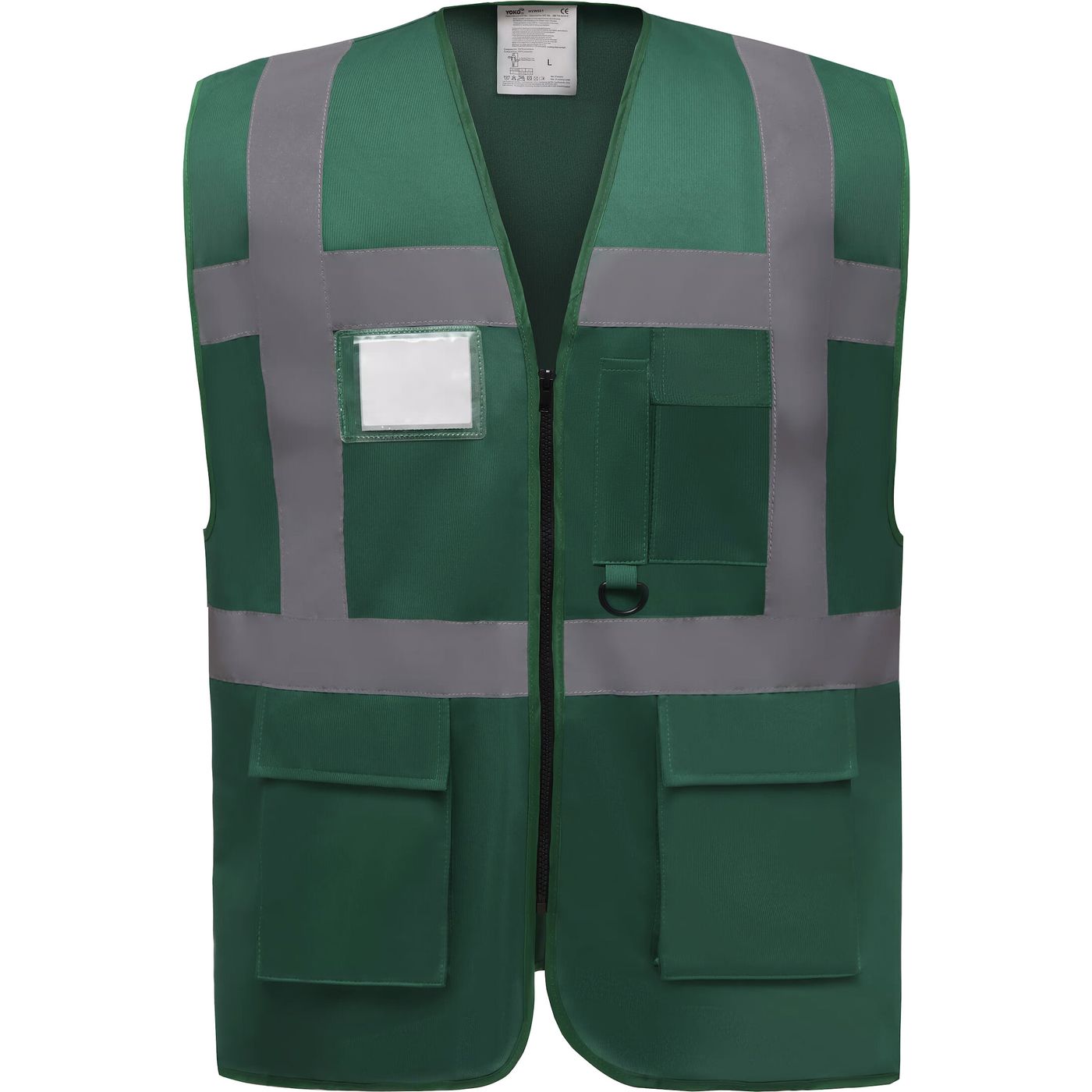 Bandes réfléchissantes de 5 cm de large autour du corps et une sur chaque épaule. Poche pour téléphone portable ou talkie-walkie à l'avant, côté gauche. Fermeture zippée sur toute la longueur. Deux poches inférieures avec rabats accessibles sur le haut et sur le côté, poches pour crayons et porte-clés, poche pour papiers d'identité côté droit, grande surface à l'arrière pour la décoration. Conforme à la norme : - EN ISO20471:2013 catégorie 2 : uniquement Hi-Vis Yellow, Hi-Vis Orange et Hi-Vis Yellow/ H-Vis Orange. - EN ISO20471:2013 catégorie 1 : uniquement Paramedic Green/Hi-Vis Yellow, Royal Blue/Hi-Vis Yellow, Red/Hi-Vis Yellow, Hi-Vis Yellow/Black, Hi-Vis Orange/Black, Hi-Vis Yellow/Navy, Hi-Vis Orange/Navy, Hi-Vis Yellow/Grey, Orange/Grey et Yellow/Purple. - EN 1150:1999 PASS : uniquement Lime. Entretien : lavage à 40° C, tissu non résistant au blanchiment, repassage et sechage en sèche linge. Composition : 100% polyester.