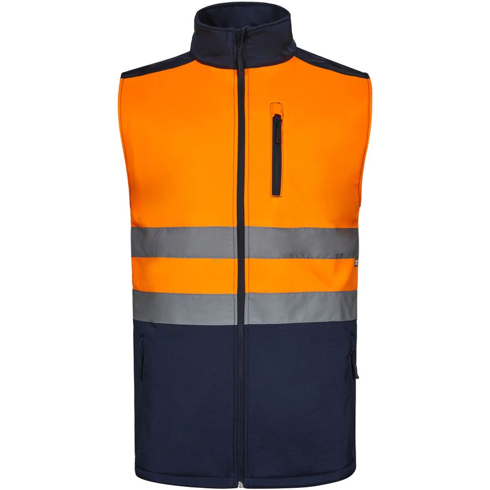 Le Gilet Softshell Bicolore est un gilet softshell bicolore 3 couches avec bandes réfléchissantes sur le torse. Fermeture à glissière centrale inversée avec rabat intérieur haut. Cinq poches, dont trois zippées et deux intérieures. Article personnalisable.