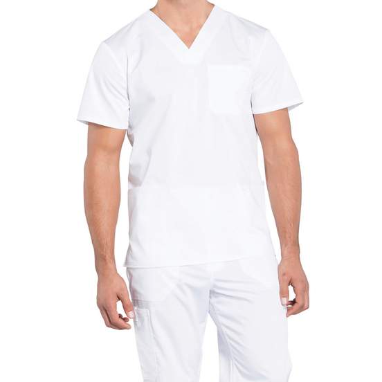 La blouse tunique Haut col v pour homme à manches courtes convient aux usages professionnels. Le col V et la coupe masculine facilitent les mouvements. Les poches permettent de garder de petits accessoires à portée de main. Le tissu sergé et les ventilations latérales contribuent au confort. Article personnalisable.