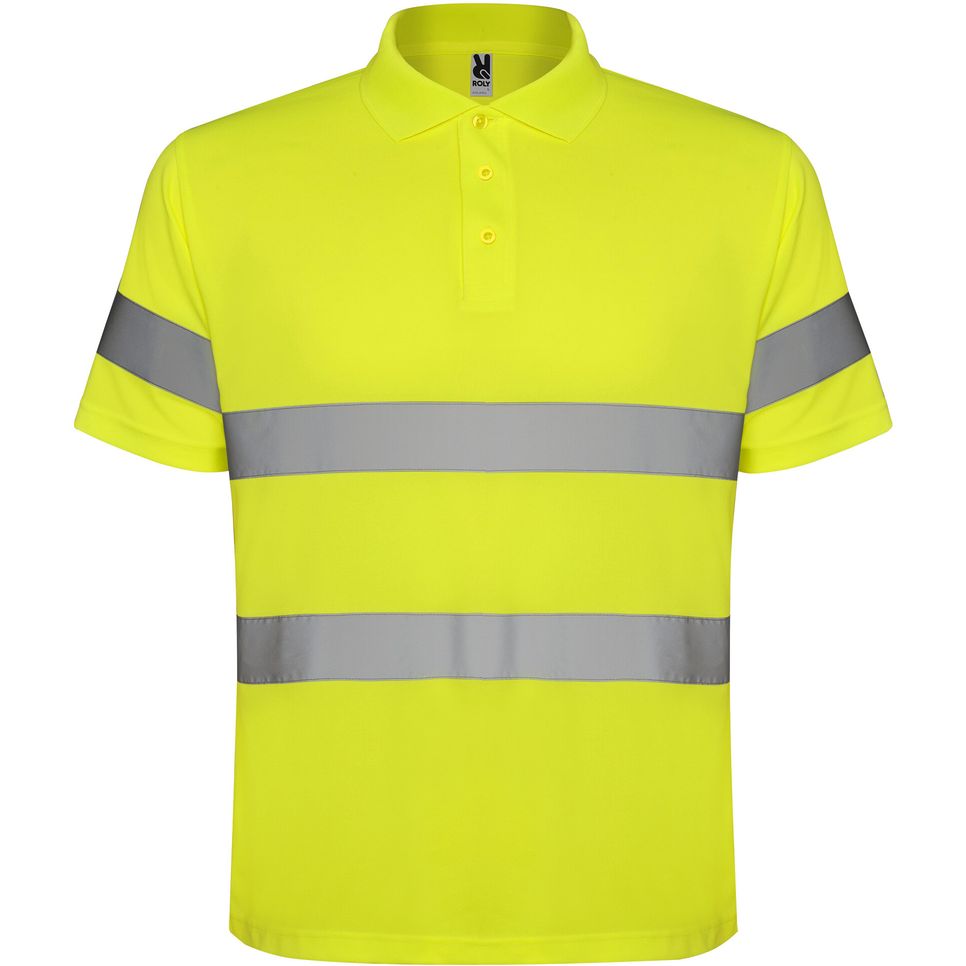 Le polo technique Polaris à manches courtes convient aux usages nécessitant une meilleure visibilité. Patte à 3 boutons, col et poignets en côte 1x1, deux bandes réfléchissantes horizontales sur poitrine et manches. Tissu anti-accrochage, personnalisable.