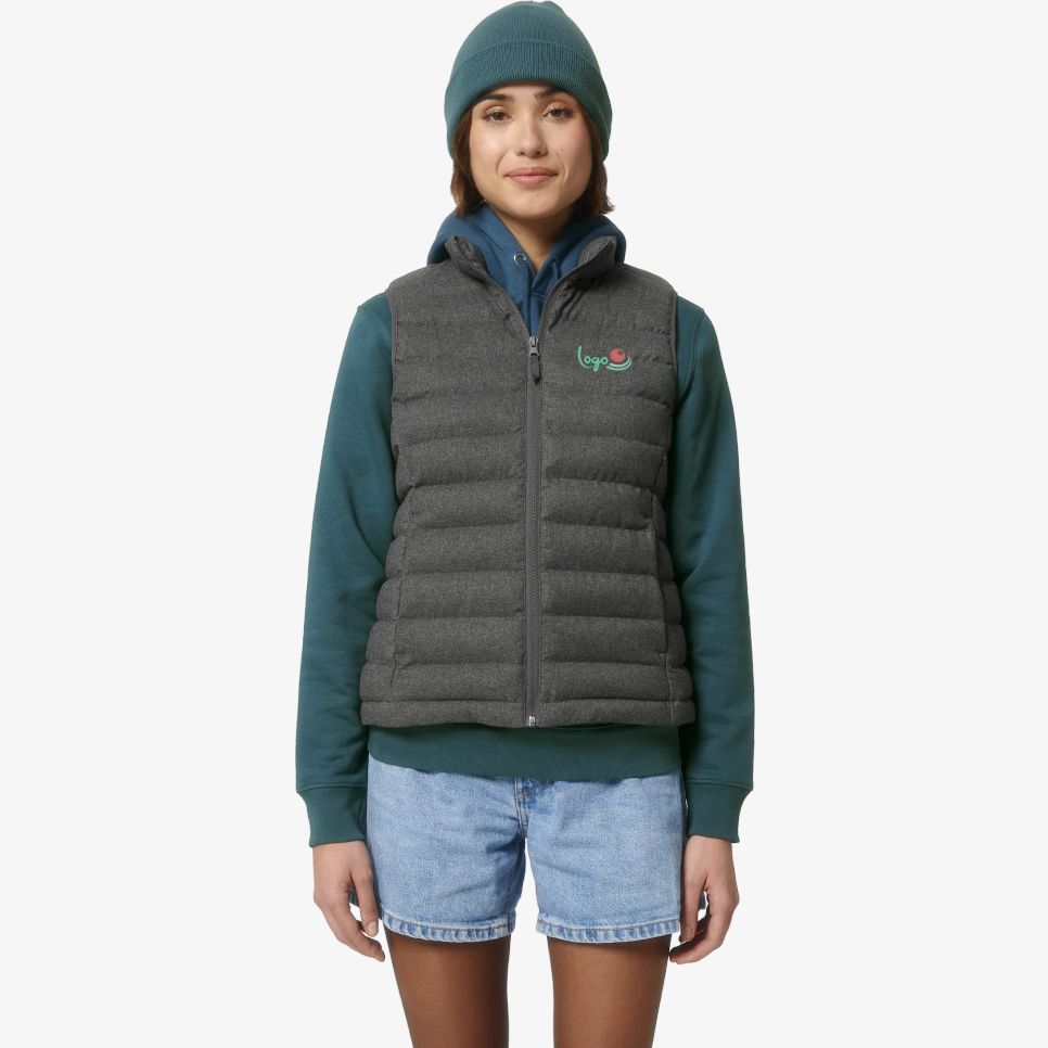 La doudoune sans manches Stella Climber wool like pour femme possède un col haut, une fermeture zippée inversée et des poches zippées. Matelassage intégral et empiècements côtés pour une coupe ajustée. Extérieur, doublure et rembourrage en polyester recyclé.