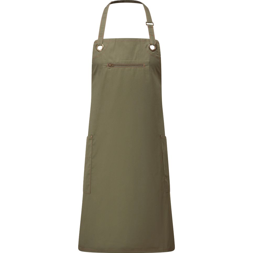 PR121 - Tablier à bavette avec coutures contrastées "Barley" - khaki/brown