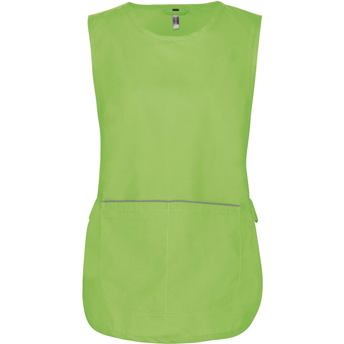 65% polyester / 35% coton. Lavage à 60°C. Tissu résistant et coupe confortable. Grande poche devant en 2 compartiments avec 1 petite poche intérieure. Pattes de réglage latérales par 2 boutons pression. Liseré contrasté haut de poche. 1 étiquette nom à l'intérieur. Bas arrondi. Longueur taille L/XL: 78 cm.