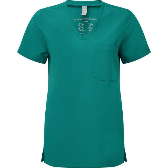 La Tunique onna Limitless est une blouse tunique femme à manches courtes, encolure V et tissu quadri extensible. La matière perméable à l’air et infroissable convient aux journées actives. Une poche plaquée avec poche stylo, des pinces au dos et des fentes côtés facilitent l’usage au quotidien. Compatible avec personnalisation.