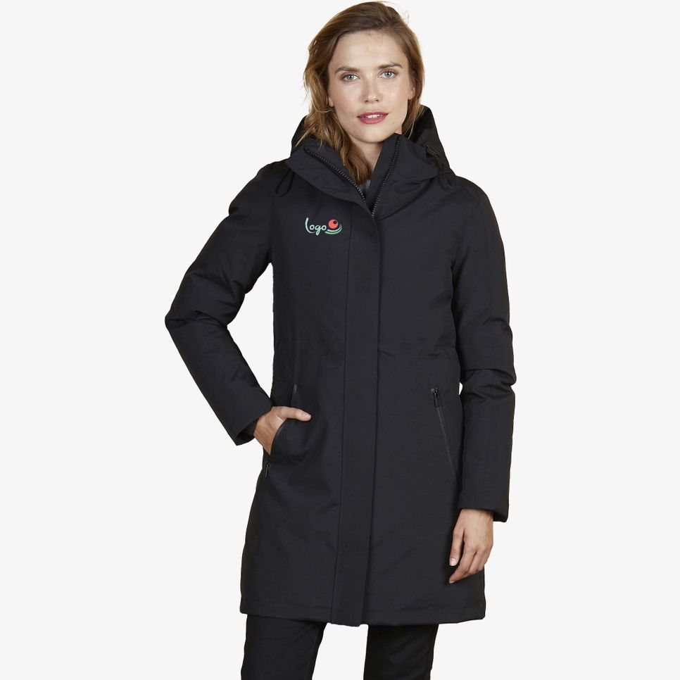 La parka blouson femme Alfi Women est conçue pour une protection renforcée contre le froid, avec capuche rembourrée, patte de fermeture aimantée et poignets élastiqués. Poches latérales zippées et poches intérieures, dont une verticale côté c\u0153ur. Personnalisation possible. Ext\u00e9rieur 100% polyester recycl\u00e9, doublure 100% polyester recycl\u00e9, rembourrage 100% polyester recycl\u00e9.
