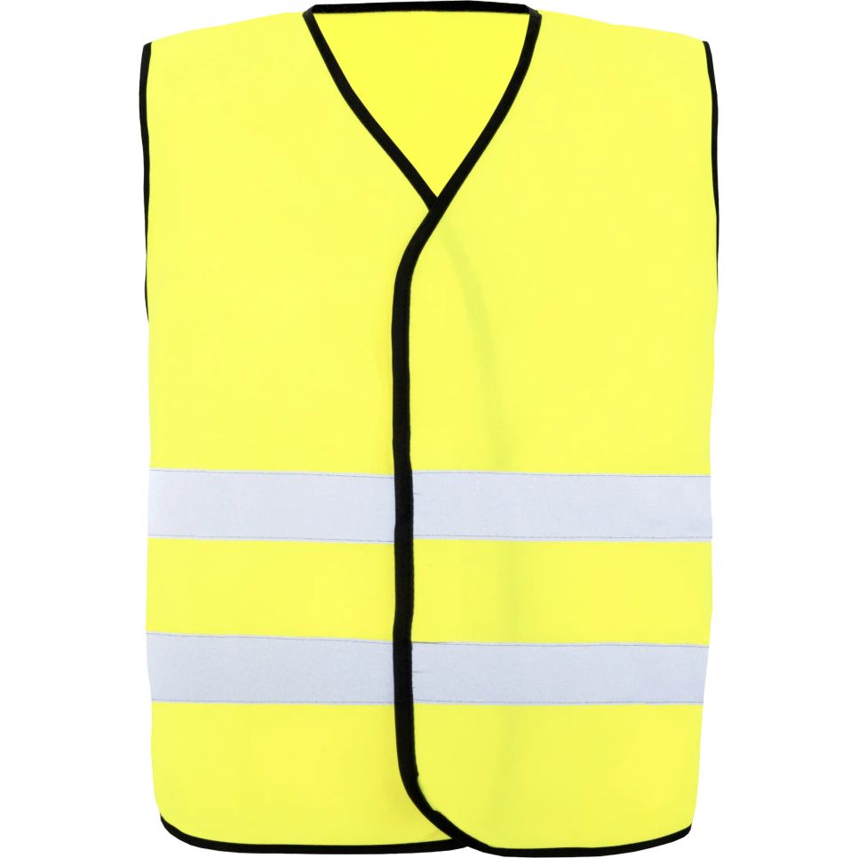 Gilet de sécurité avec deux bandes réfléchissantes de 5 cm de large autour du corps. Fermetures bande auto-agrippante. Composition : 100 % polyester.