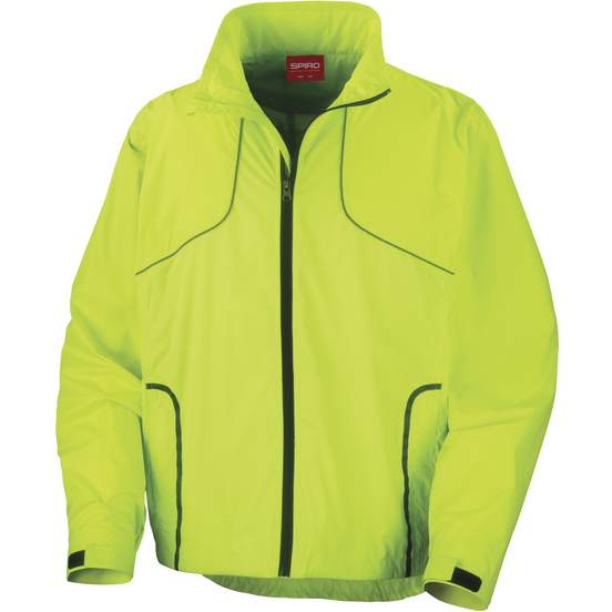 VESTE DE SPORT ZIPPEE. Extérieur : 100% polyester avec enduction PU (100gr/m²).Veste technique légère imperméable 5000mm et respirante 2000 gr/m²/24h. Piping réfléchissant devant. 2 poches côté zippées. Poignets ajustables avec bande auto-agrippante. Panneau dorsal plus long, poche dorsale zippée et logo Spiro au dos.