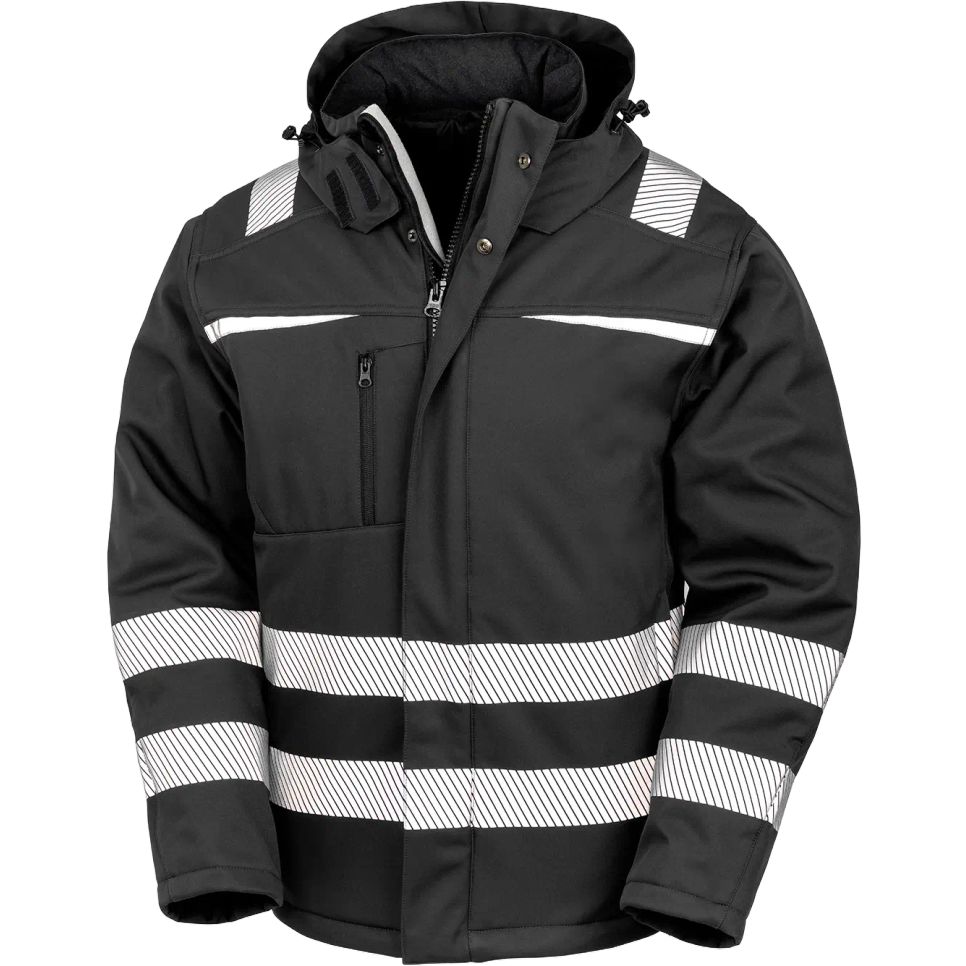 La veste sécurité Dynamic Softshell coat est une softshell longue à trois couches avec finitions réfléchissantes imprimées, capuche doublée tricot escamotable réglable, protection menton, ourlet réglable et 5 poches zippées. Conçue pour un usage professionnel et la personnalisation.