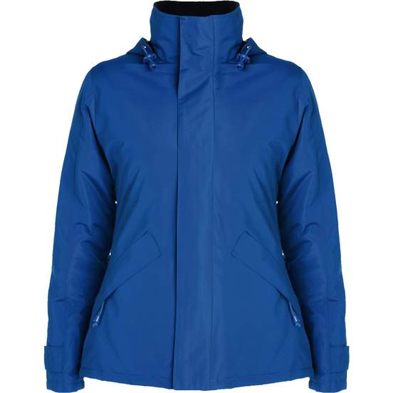 La parka "Europa Woman" de Roly est conçue avec une attention particulière aux détails : zip intégral, capuche amovible, poches latérales...