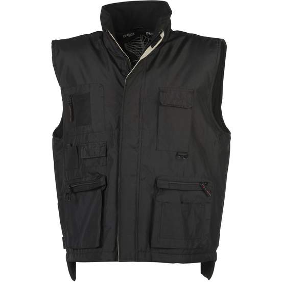 Le bodywarmer multi-poches 'Évasion' convient aux usages nécessitant du rangement, avec 7 poches extérieures et 1 poche intérieure. La doublure polaire anti-pilling et l\u2019ouatine apportent une isolation supplémentaire. La fermeture zippée avec rabat limite les entrées d\u2019air. Un accès permet de personnaliser le produit.