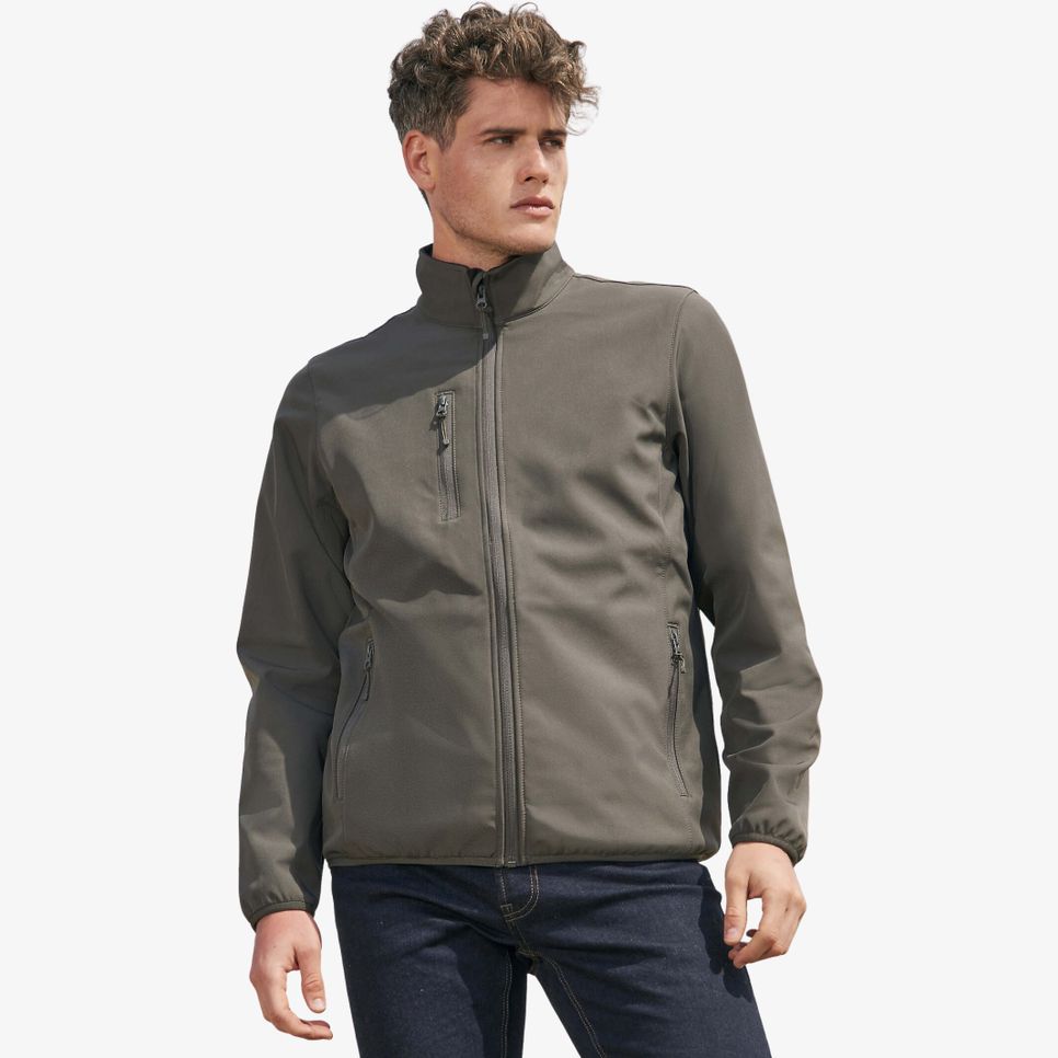 La softshell homme zippée Falcon men convient aux usages quotidiens et aux activités extérieures, avec une construction 3 couches, un intérieur polaire et une membrane 5000 mm. Poches zippées et biais élastiques aux poignets et au bas du corps. Personnalisable.