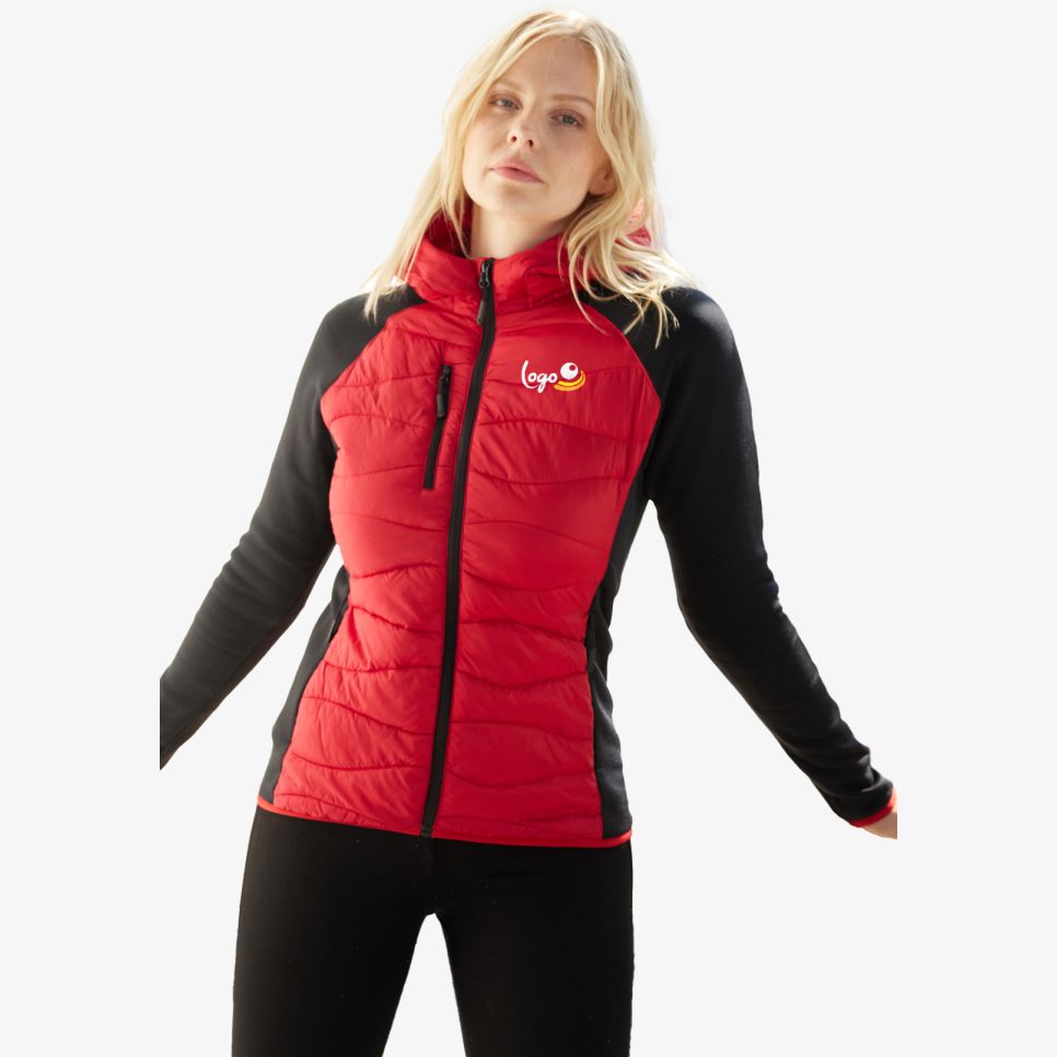 La Ladies Hybrid Jacket est une doudoune hybride à capuche avec polaire extensible et empiècements matelassés à l\"avant, à l\"arrière et sur la capuche. Manches raglan, fermeture zippée avec mentonnière, poches latérales, poche poitrine zippée et 2 poches intérieures. Composition : tissu extérieur 100% polyamide ; tissu extérieur 93% polyester, 7% élasthanne ; rembourrage 100% polyester.