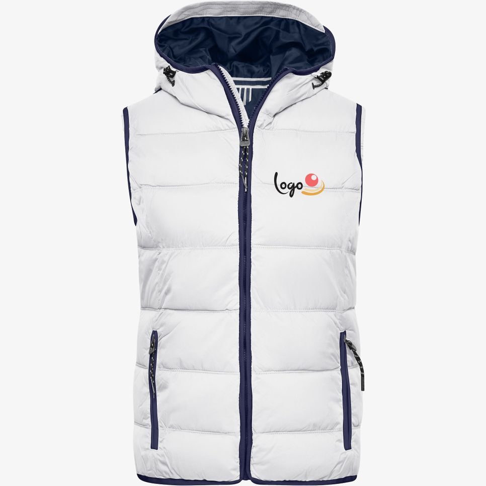 La doudoune Ladies Maritime vest pour femme, légèrement cintrée, avec capuche et surface mate à revêtement TPU léger. Coupe-vent hydrofuge 600 mm, avec 2 poches latérales, une poche intérieure et un rabat coupe-vent. Personnalisation possible.
