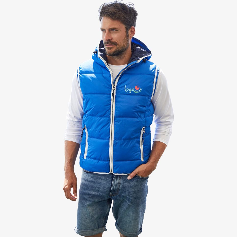 La doudoune Men s Maritime vest est un gilet matelassé à capuche avec surface mate et revêtement TPU léger. La conception coupe-vent et hydrofuge convient aux usages extérieurs, avec deux poches latérales, une poche intérieure et un rabat coupe-vent. Emmanchures élastiques et capuche avec cordon élastique stopper. Zone au dos prévue pour personnalisation.