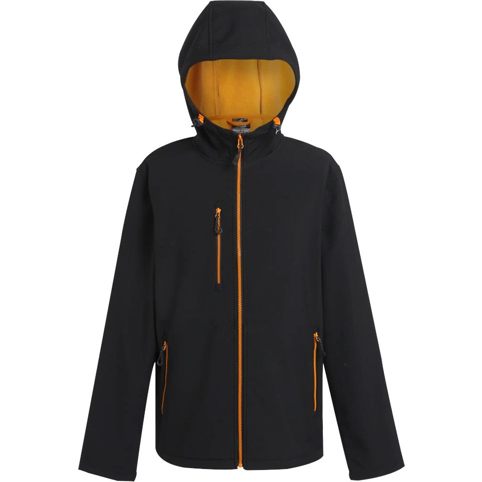 TRA705 - Men's Navigate 2 Layer Hooded Softshell Jacket - black/orange_pop