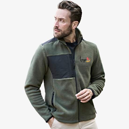 La polaire Mountain Fleece est une polaire épaisse avec empiècements renforcés aux épaules et aux coudes. Poches avant zippées et poche poitrine. Biais élastiqués aux manches. Article personnalisable.