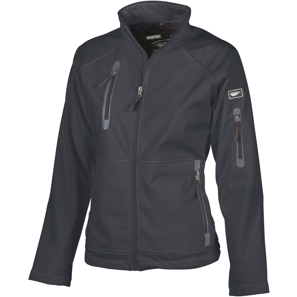 La softshell femme Newport est un blouson léger en tissu contrecollé 3 couches avec membrane respirante et imperméable. L\u2019intérieur micropolaire apporte un confort d\u2019usage, avec 4 poches extérieures zippées et un bas élastiqué avec stoppers.