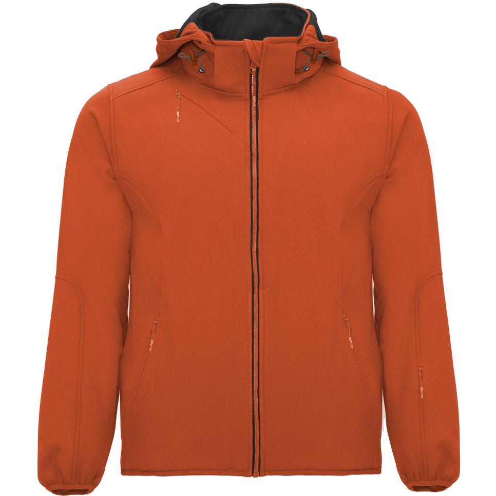 Le softshell Siberia 2 couches avec zip central et capuche amovible. Intérieur en tissu micropolaire, poches latérales et poche poitrine zippées, plus une poche sur manche. Liseré élastique aux poignets et au bas. Adapté à la personnalisation.