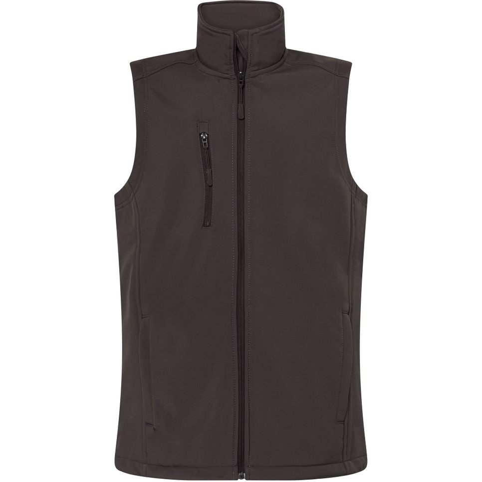 Le Softshell vest est un bodywarmer softshell 3 couches avec grand zip et deux poches zippées. La doublure polaire contribue au confort thermique. Convient aux usages extérieurs et peut être personnalisé.