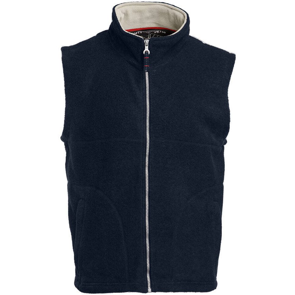 Le gilet polaire Softy en 100% polyester anti-boulochage, avec demi-lune et bande propreté twill au col. Deux poches zippées. Convient à la personnalisation.