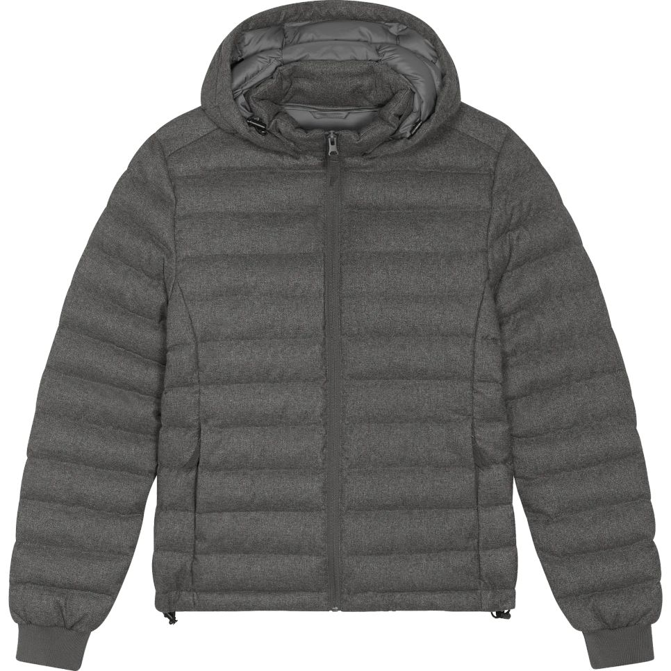 La Stella Voyager wool like est une veste matelassée pour femme à aspect laineux, avec manches montées, col haut et capuche amovible par boutons pression. Poches passepoilées zippées et bas de manches en côtes 1x1 souple. Composition : extérieur 100% polyester recyclé ; rembourrage 100% polyester recyclé ; doublure 100% polyester recyclé.