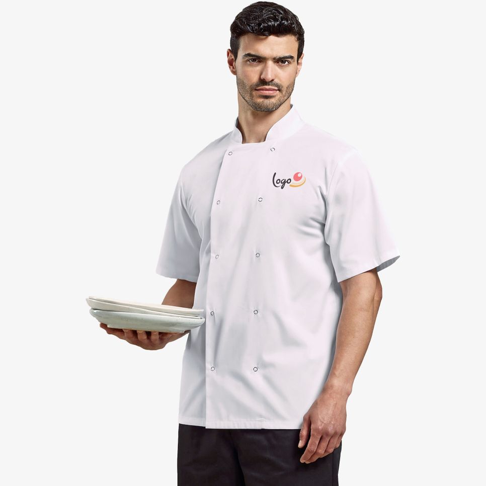 Hauts de travail personnalisés - PR664 - Veste de cuisine à manches courtes et à boutons-pression
