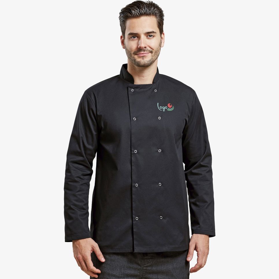 PR665 - Veste de cuisine à manches longues et à boutons pression - black