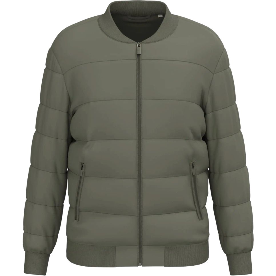 La veste matelassée unisexe est conçue en polyamide pongé recyclé à 100 %. Elle présente une coupe standard avec un col teddy et un tissu déperlant et coupe-vent. La construction 300T intègre un rembourrage en polyester recyclé post-consumer. La veste comprend des bord-côtes ton sur ton au col, manches et bas, ainsi que des poches zippées devant et une poche intérieure zippée côté cœur. La finition intègre un patch de personnalisation et une bride de suspension à l'intérieur. La partie haute du dos est sans surpiqûre pour faciliter la personnalisation.