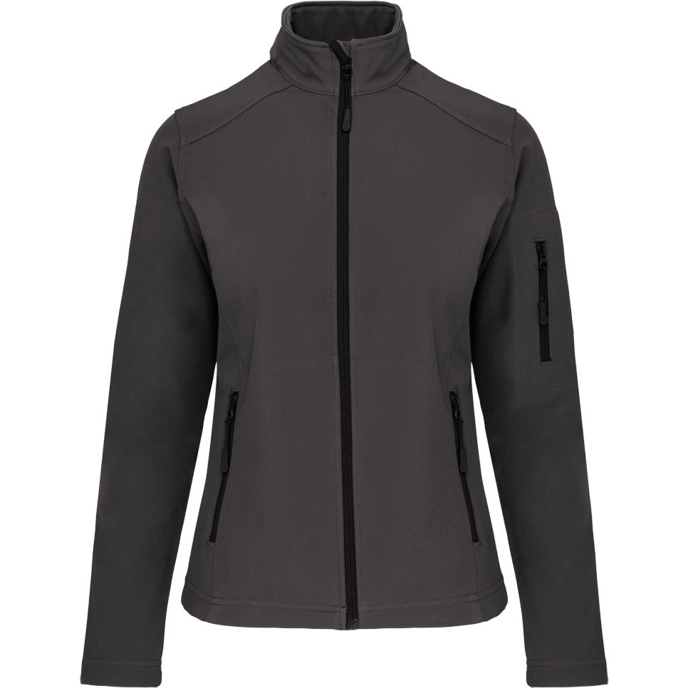 La Veste Softshell Femme est une veste 3 couches pour usage quotidien, avec coupe cintrée, fermeture zippée et trois poches zippées. Conception adaptée à la personnalisation.